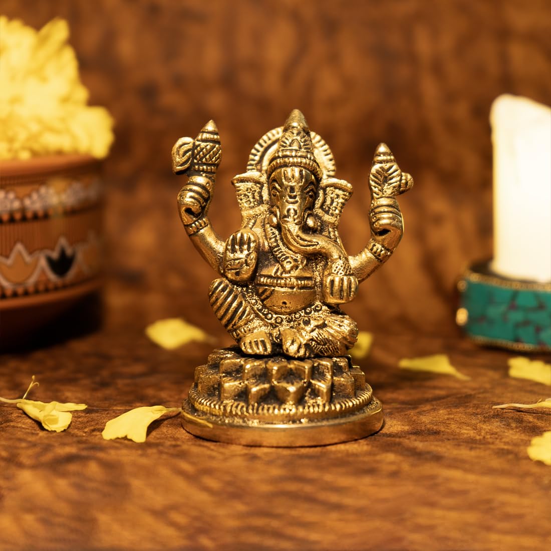 Ekhasa 100% Pure Brass Ganesha Idol (Size: 5.5 cm) | Pital Ganesh Murti for Pooja Room, Home Decor, Office Desk and Car Dashboard | Vinayagar Statue for Diwali Puja